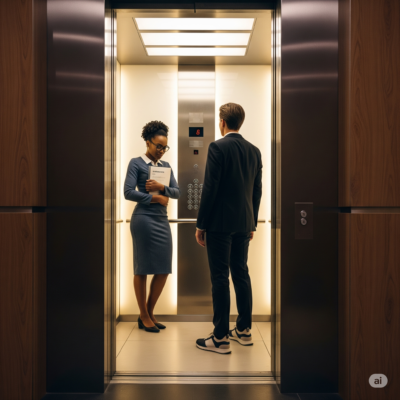 We got off on the same floor. Turns out? He was the head of the company I had an interview with. That was my chance — and I blew it by staying silent.